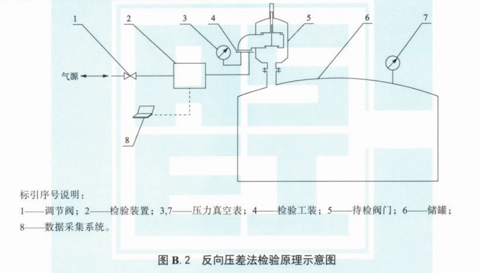 b)持續(xù)輸人/抽出測試氣體并記錄流量,該流量即為呼吸閥的實(shí)時(shí)泄漏量。