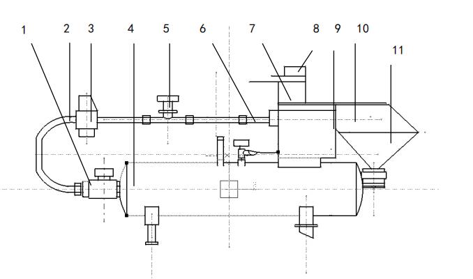 說明:1——電磁閥;2——壓縮空氣管線;3——減壓閥;4——空壓罐;5——壓力表;6——空氣加速噴嘴;